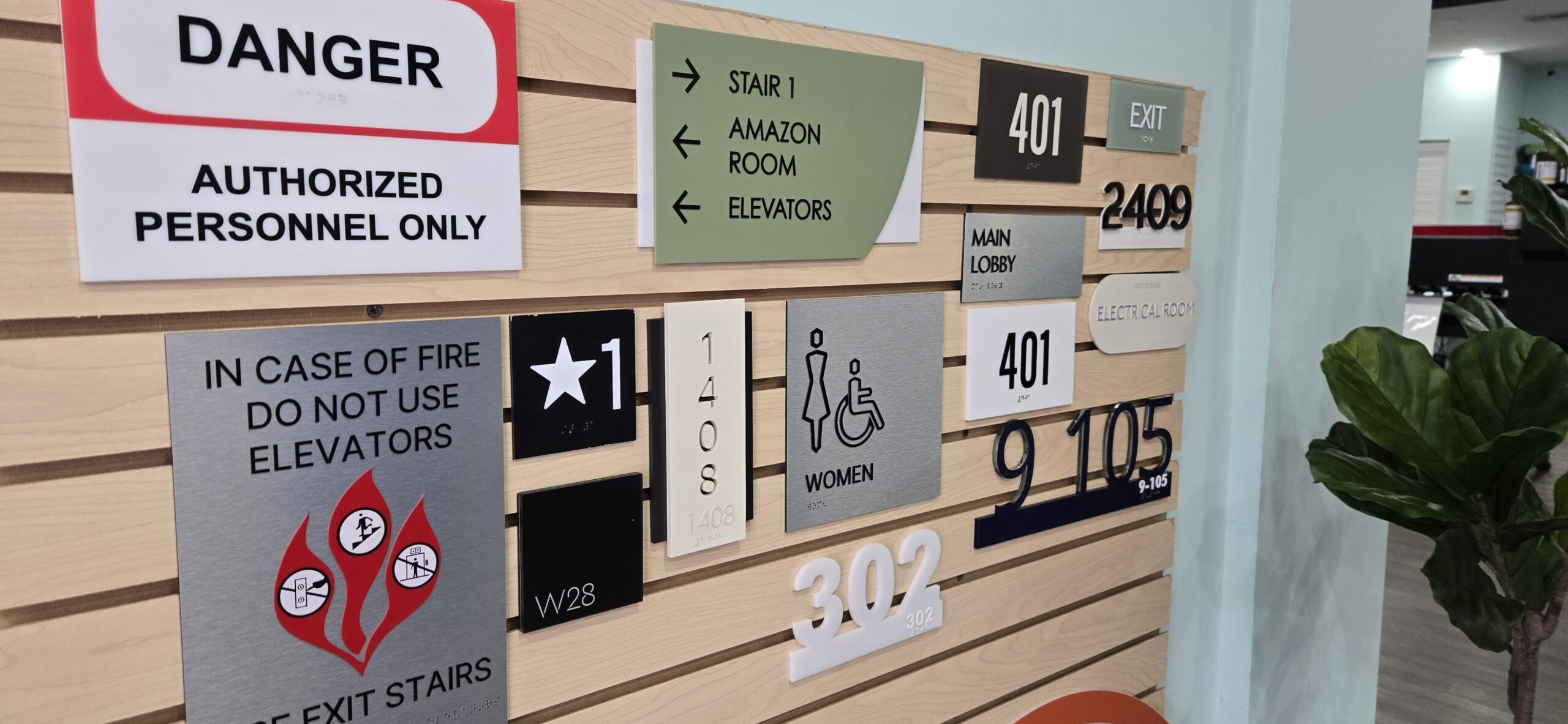 Tactile, Braille-equipped signs with high contrast lettering—fully ADA compliant.